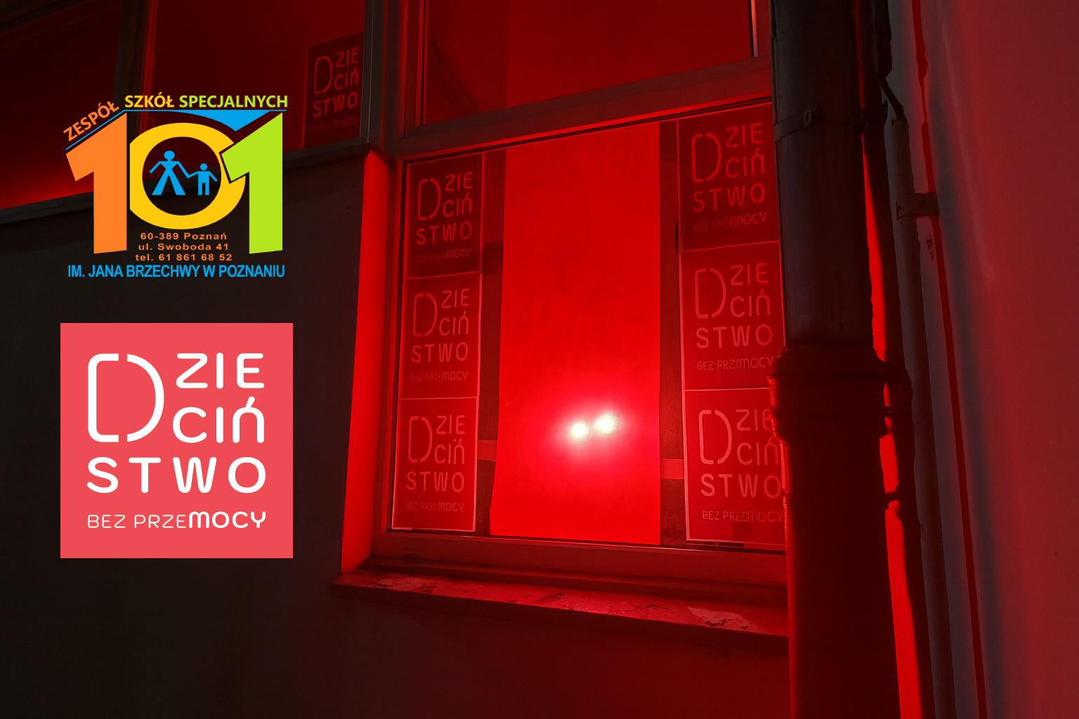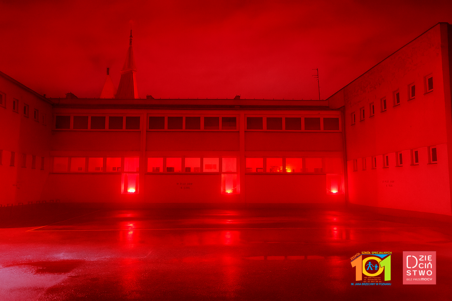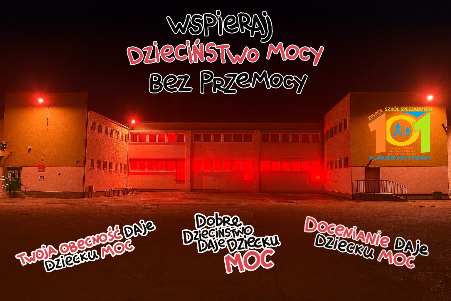 Dziś 19 listopada po raz kolejny nasza szkoła i tysiące innych budynków z całym kraju o godzinie 17.00 zapalą się na czerwono, to znak udziału w ogólnopolskiej Kampanii Dzieciństwo bez Przemocy organizowanej przez Fundację Dajemy Dzieciom Siłę i jednocześnie wyraz sprzeciwu wobec krzywdzenia dzieci.